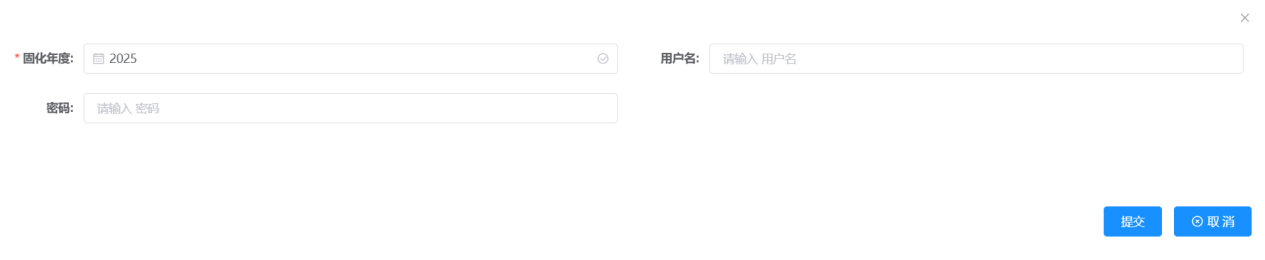 点击按钮原始账目固化打开设置页面,设置固化所属的年份,点击提交按钮