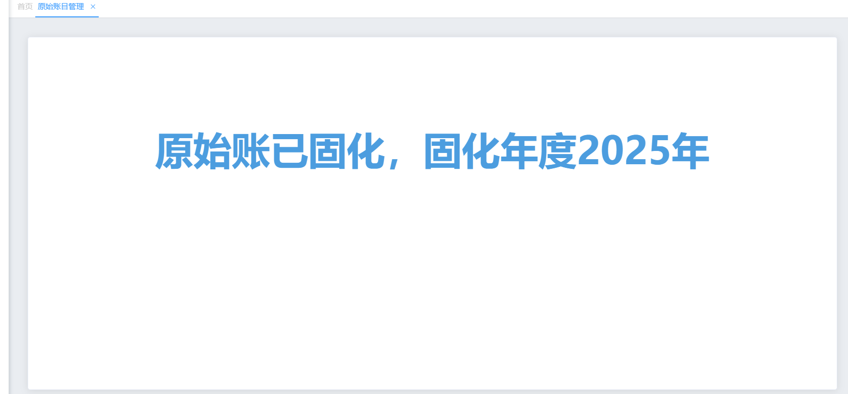 历史的资产账目入库后,需要对所有往年原始账目进行固化封存,此时在此页面中点击按钮原始账目固化进行操作。