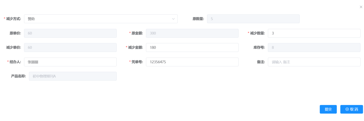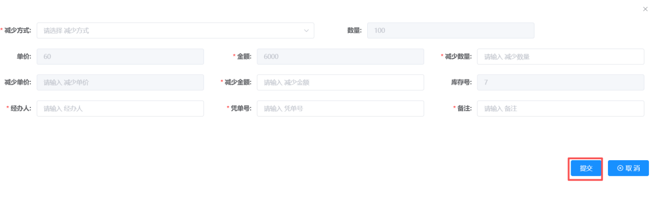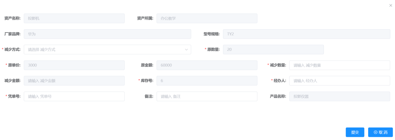设置减少方式等信息后点击提交按钮,即可对该资产进行减少。
